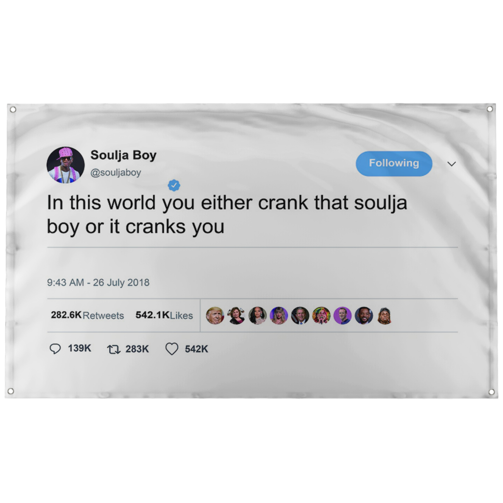 Soulja Boy “In This World You Either Crank That Soulja Boy Or It Cranks You” Tweet Flag